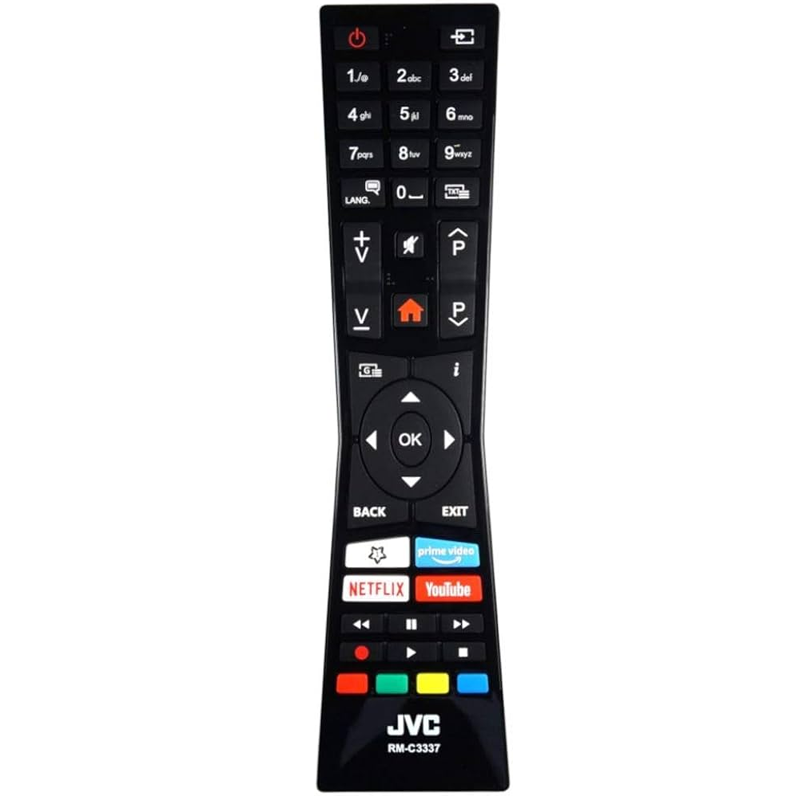 Diaľkové ovládanie JVC pre rôzne značky a typy TV; obsahuje tlačidlo NETFLIX