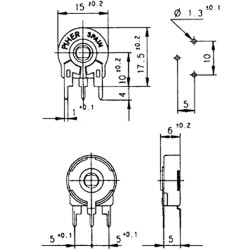 Trimer; montážny; jednootáčkový, stojaci; 500kΩ; 250mW; Ø15x6mm