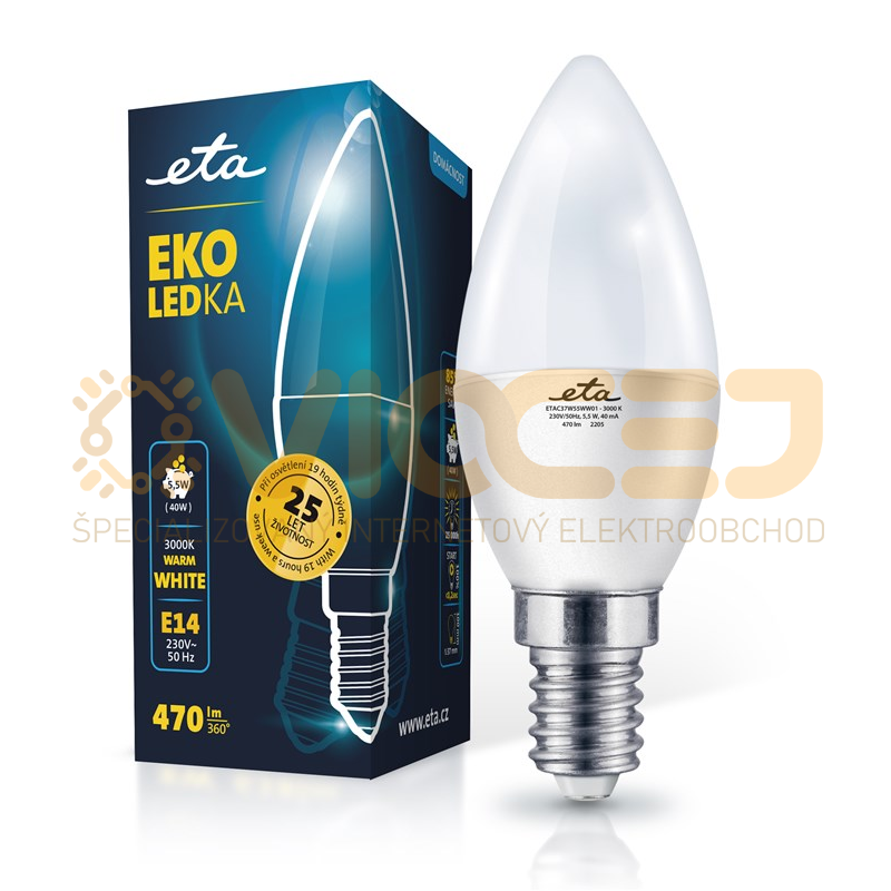 LED žiarovky ETA sú spoľahlivým a úsporným zdrojom energie do každej domácnosti. Nielen, že oproti klasickej žiarovke ušetríte až 90% spotreby energie, ale vydrží vám svietiť až 30 000 hodín (cca 15 rokov).