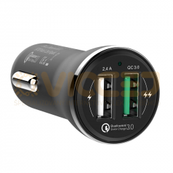 Na krátkych cestách určite oceníte funkciu rýchlo nabíjania vďaka technológii Qualcomm Quick Charge 3.0. Zeleno označený USB výstup tak disponuje nabíjacím prúdom 3,6-6V/3A - 6,2-9V/2A - 9,2-12V/1,5A. Pre využitie tejto technológie musí aj nabíjaný prístroj podporovať technológiu Qualcomm Quick Charge 3.0.