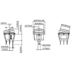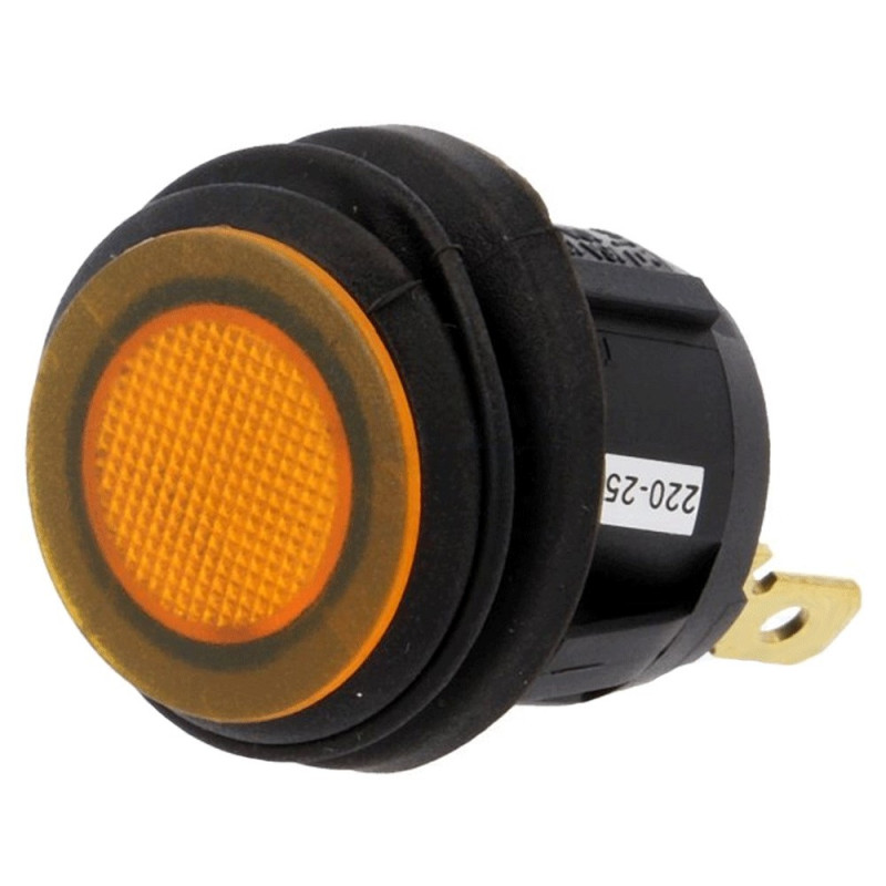 Kolískový vypínač; Vypínací kontakt s aretáciou (2polohy) 2pin(+1pin LIGHT); 10A/250VAC; S podsvietením 230V; Do panelu; Montáž Ø20.2mm; Trieda tesnosti IP65