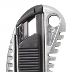 Odlamovací kovový nožík kvalitného masívneho prevedenia s kovovou lištou a pogumovanou rukoväťou.