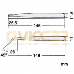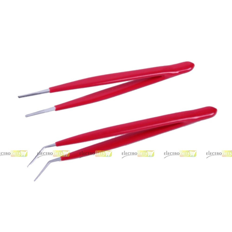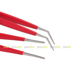 Pár pinziet ( 1x rovná + 1x s uhlom 45° ). Dĺžka pinziet 146mm a 148mm. Plocha každej pinzety je drážkovaná. Izolovaná ´´rukoväť´´ z gumového materiálu.