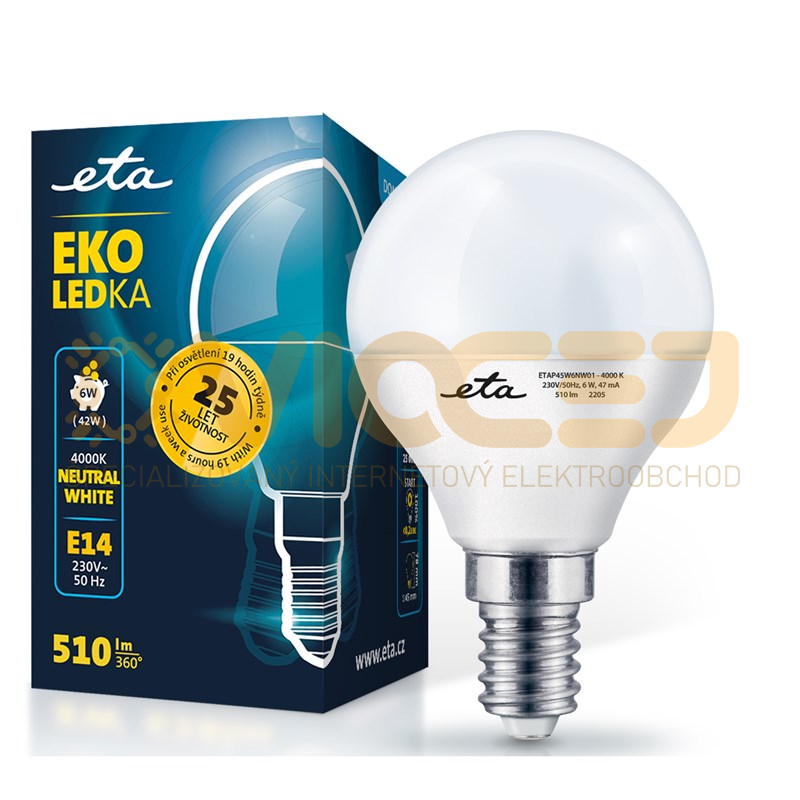 LED žiarovky ETA sú spoľahlivým a úsporným zdrojom energie do každej domácnosti. Nielen, že oproti klasickej žiarovke ušetríte až 90% spotreby energie, ale vydrží vám svietiť až 30 000 hodín (cca 15 rokov).