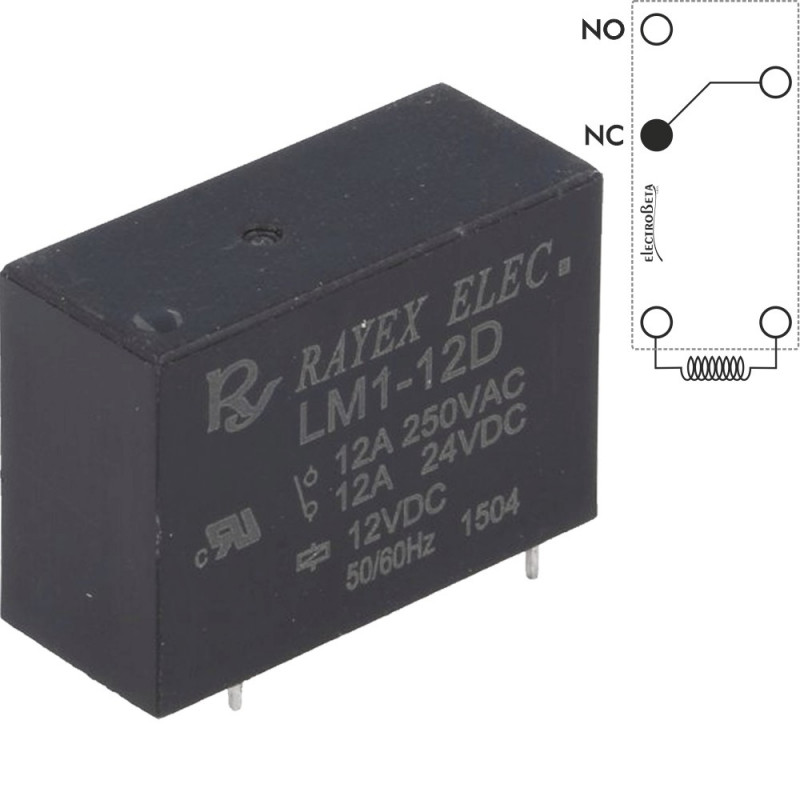 Relé: elektromagnetické; 1xPREPÍNACIE (NC/NO); Napätie cievky:12VDC; 12A/250VAC; 270Ω