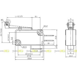 Mikrospínač 3pin; s páčkou-valček; ON-(ON); 10A/250VAC