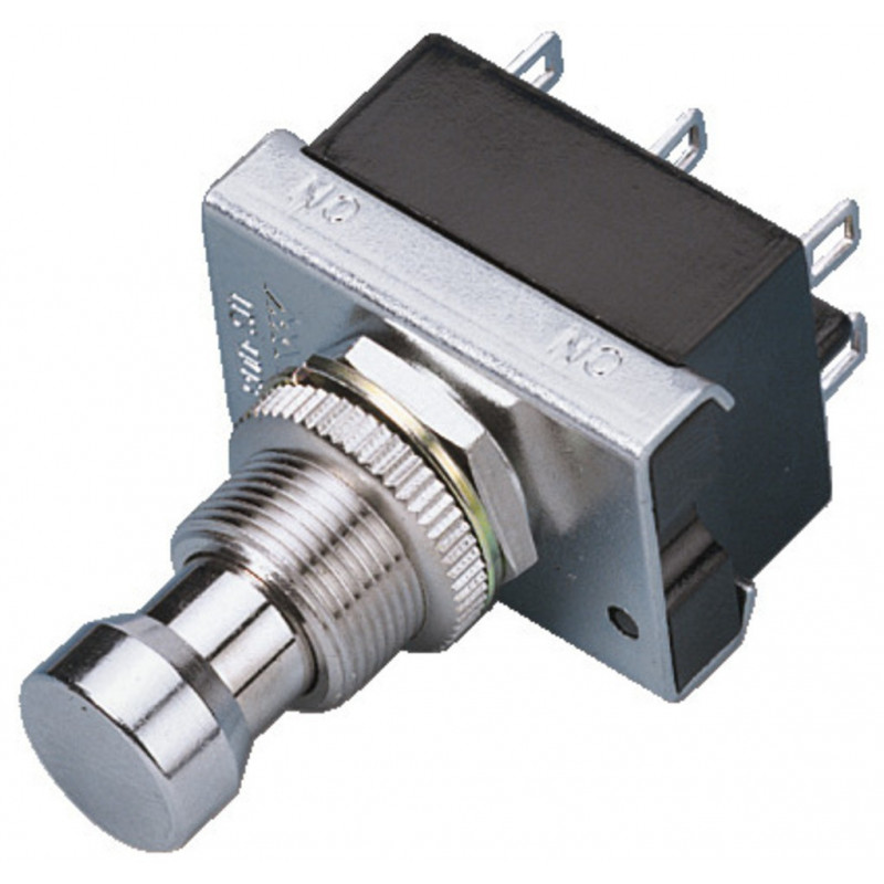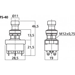 Vypínač; Prepínací kontakt (2x) s aretáciou (2polohy); 2A/250VAC; 4A/125VAC; Do panelu; Montáž Ø12mm