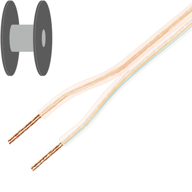 Vodič; reproduktorový; 2x1.5mm2; licna [LYC]; OFC; priehľadný (1x žila značená modrým pásikom); PVC; 100m