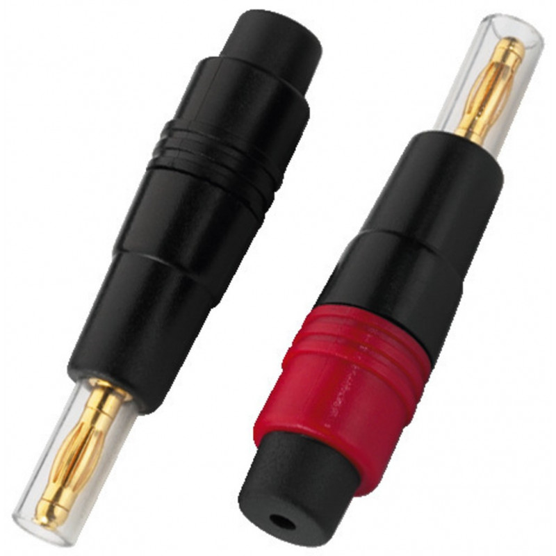 Pár kvalitných banánikov pre pripojenie reproduktorov. Plastové telo + pozlátené kontakty. Prevedenie s červeným a čiernym krúžkom pre rozlíšenie. Pre repro káble do Ø 5mm. Spôsob uchytenia: SPÁJKOVANIE. Vhodné pre výkonnú techniku.
