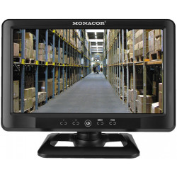 LCD colour monitor with LED backlight, for surveillance systems and multimedia applications.Sharp and high-contrast display, 4:3 or 16:9, switchable2 video inputs via supplied adapter cableMirror-inverted display possibleFlip functionBrightness, colour and contrast to be adjusted via on-screen menu (OSD)Video connection via RCA adapter cable (supplied)Supplied with infrared remote control and baseSupplied with matching PSU and connection cable for motor vehiclesVisible diagonal screen size: 22.5 cm (9")