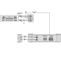 Konvertor úrovne signálov; 2x REPRO (L+R); 2x RCA; Aktívny; Spínanie zosilňovača (REM)