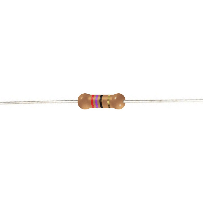Rezistor: uhlíkový; THT; 27Ω; 0.25W; ±5%; Ø2.5x6.7mm