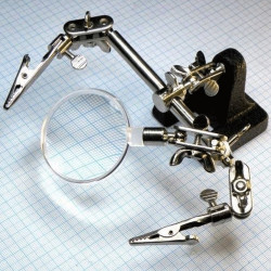 Lupa so svorkami a kovovým podstavcom; priemer lupy Ø50mm; Zväčšenie 2.5x