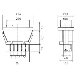 Kolískový prepínač; prepínací kontakt bez aretácie (1poloha) 5pin; 20A/12VDC; Do panelu; Montáž 30x17.6mm