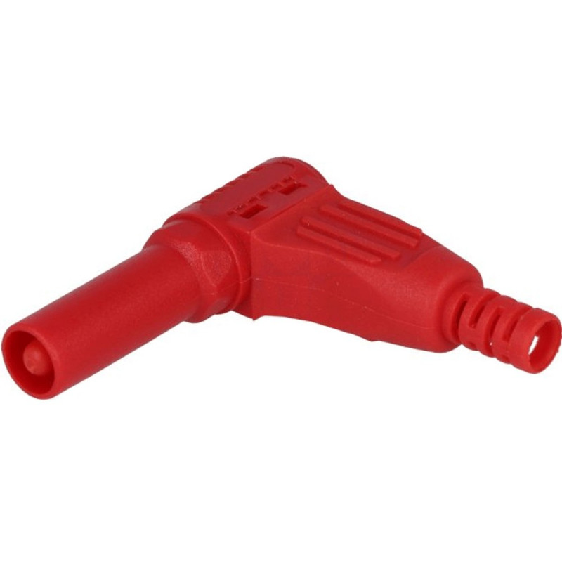 Banán; kolík; 4mm; 32A; pre meraciu techniku; spájkovací; norma EN61010 1000V CATII; uhlový 90°; červený (+)