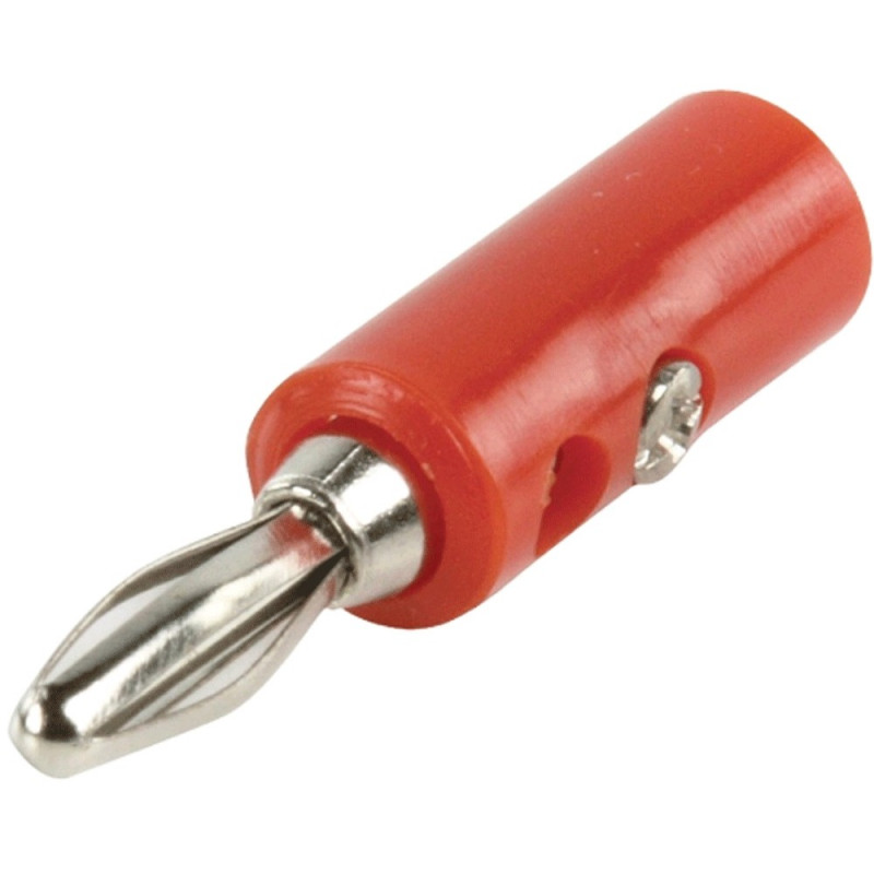 Banán; kolík; 4mm; 60VDC; pre meraciu techniku; skrutkovací; s priečnou zdierkou; červený (+)