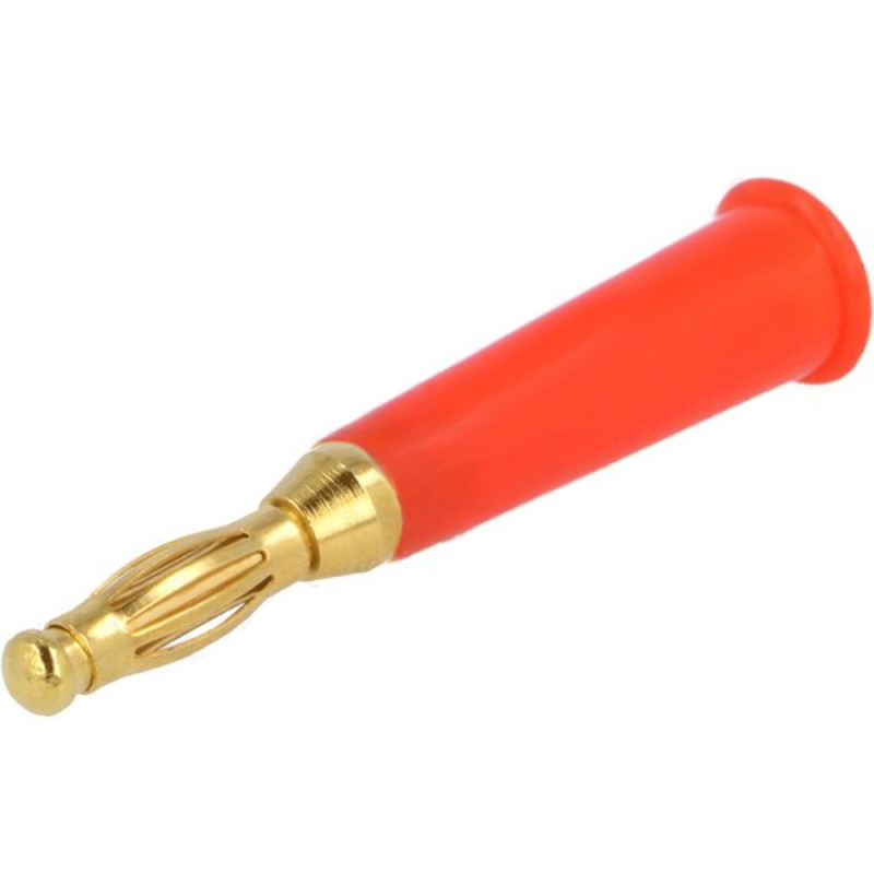 Banán; kolík; 4mm; 60VDC; pre meraciu techniku; spájkovací; Priemer vodiča max.5mm; červený (+); pozlátený kontakt