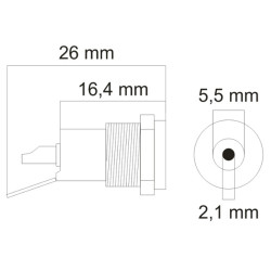 DC konektor; 5.5/2.1; Panelový; Spájkovací; Hrúbka panelu max.5mm