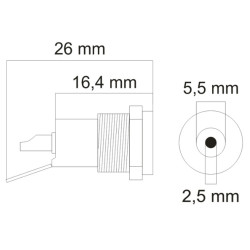DC konektor; 5.5/2.5; Panelový; Spájkovací; Hrúbka panelu max.5mm