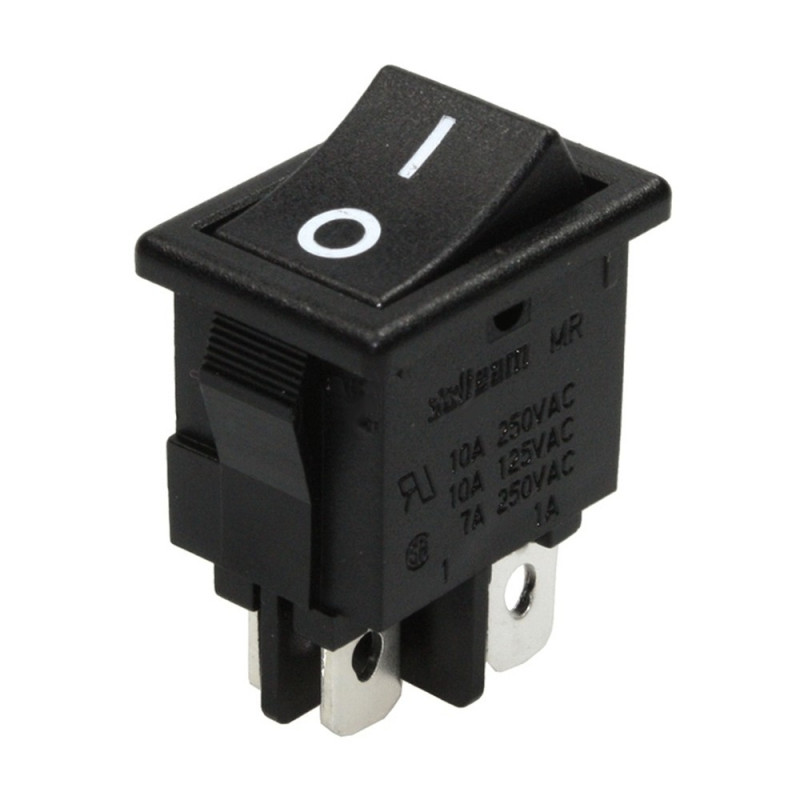 Kolískový vypínač; Vypínací kontakt s aretáciou (2polohy) 2x2pin; 7A/250VAC; Do panelu; Montáž 19.2x13mm