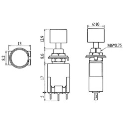 Spínač; Spínací/Prepínací kontakt (NC/NO 3pin) bez aretácie (1poloha); 3A/250VAC; Do panelu; Montáž Ø6.2mm