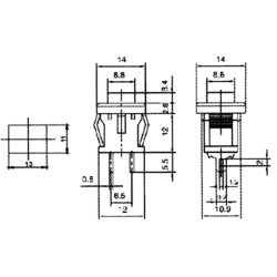 Spínač; Spínací kontakt bez aretácie (1poloha); 1A/250VAC; Do panelu; Montáž 13x11mm