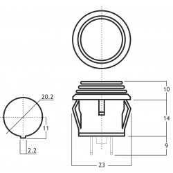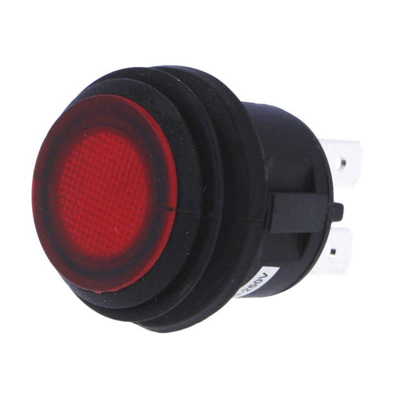 Vypínač; Prepínací kontakt s aretáciou (2polohy); 6A/250VAC; S podsvietením 230V; Do panelu; Montáž Ø20.2mm; Trieda tesnosti IP65