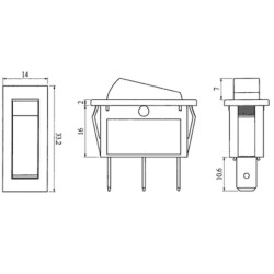 Kolískový prepínač; Prepínací kontakt s aretáciou (3polohy) 3pin; 10A/250VAC; Do panelu; Montáž 30.4x11.2mm