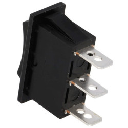 Kolískový prepínač; Prepínací kontakt bez aretácie (1poloha) 3pin; 10A/250VAC; Do panelu; Montáž 30.4x11.2mm