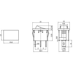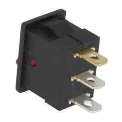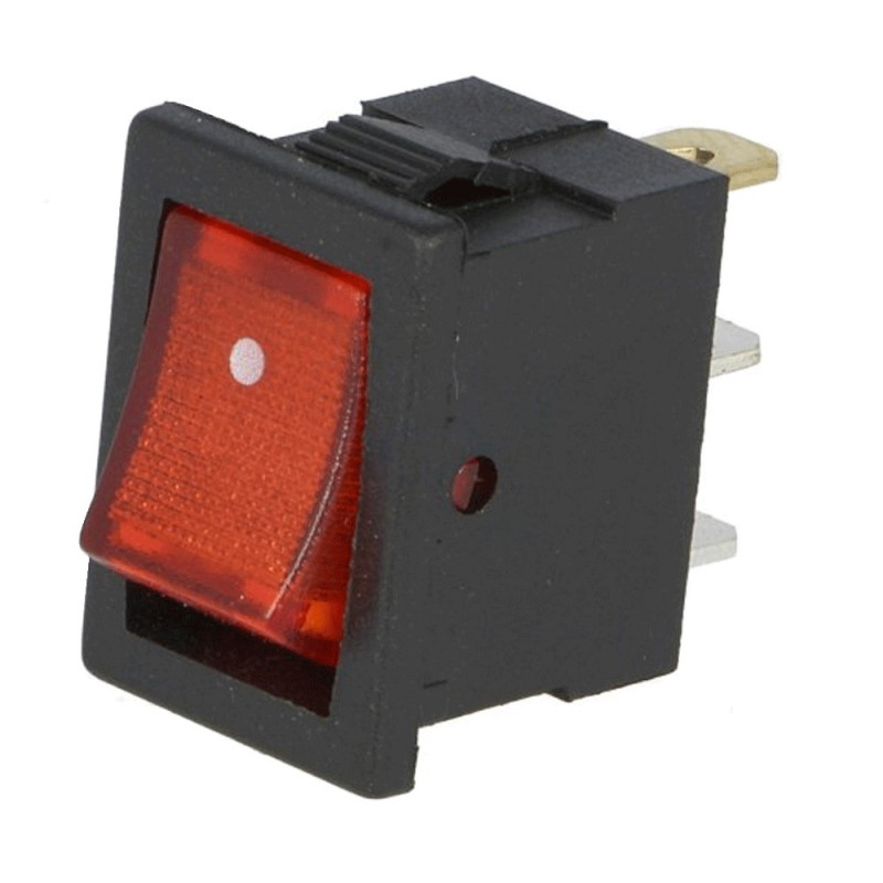 Kolískový vypínač; Vypínací kontakt s aretáciou (2polohy) 2pin(+1pin LIGHT); 3A/250VAC; S podsvietením 230V; Do panelu; Montáž 18x13.1mm