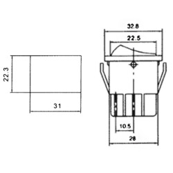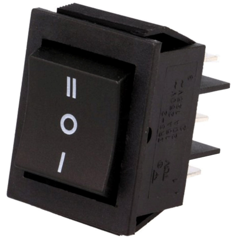 Kolískový prepínač; Prepínací kontakt s aretáciou (3polohy) 3pin; 15A/250VAC; Do panelu; Montáž 31x22.3mm