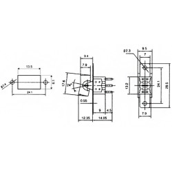 Kolískový prepínač; Prepínací kontakt s aretáciou (2polohy) 3pin; 3A/250VAC; Do panelu; Montáž 13.5x8.1mm
