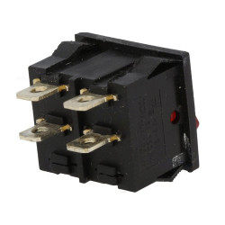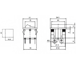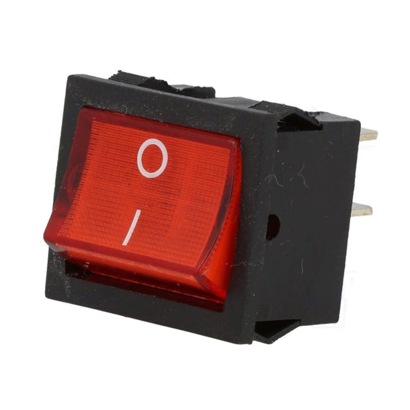 Kolískový vypínač; Vypínací kontakt s aretáciou (2polohy) 2x2pin; 6A/250VAC; S podsvietením 230V; Do panelu; Montáž 22x19.5mm