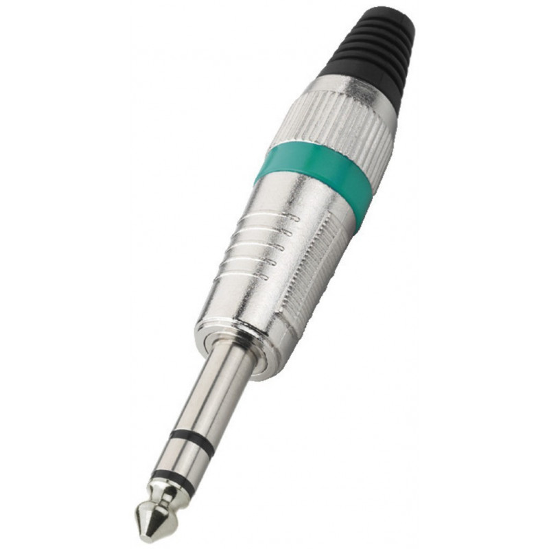 Jack6.3 stereo; kolík; kovové telo; na spájkovanie; priamy; na kábel; zelený prúžok